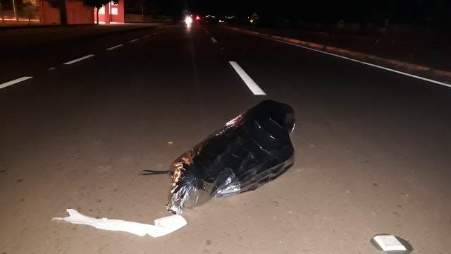 peças quebradas do veículo que atropelou a vítima, em seguida o corpo foi